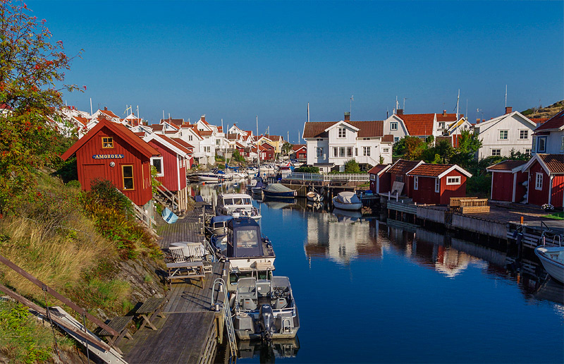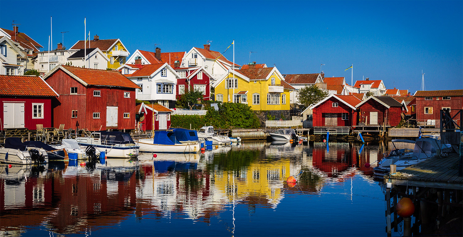Looking for the reflection in the water. Typical swedish westcoast village. Summer 2014